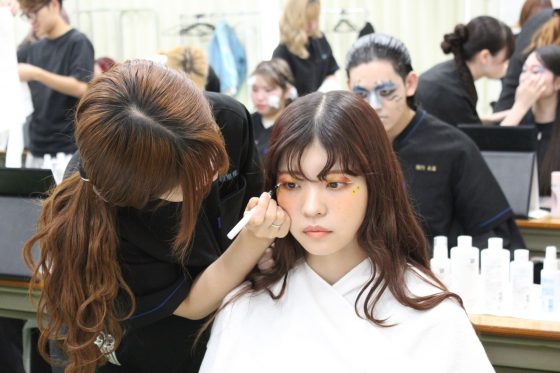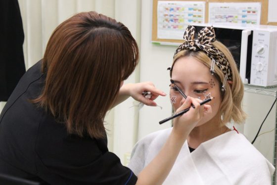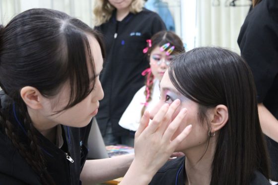 美容師養成科2年生がメイクアップコンテストを行いました。 今回のコンテストのテーマは、「color(カラー)」です。 二人一組となり、お互いの顔にメイクを施しました。