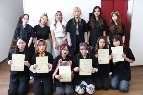 本校からは、美容部門ワインディング種目4名、アップスタイル種目1名、カット種目1名、まつ毛エクステンション部門1名の計7名が出場しました。