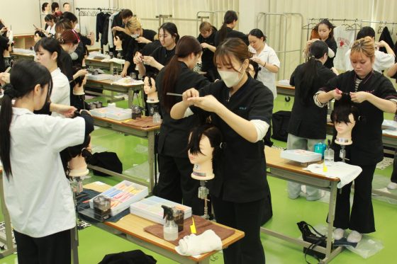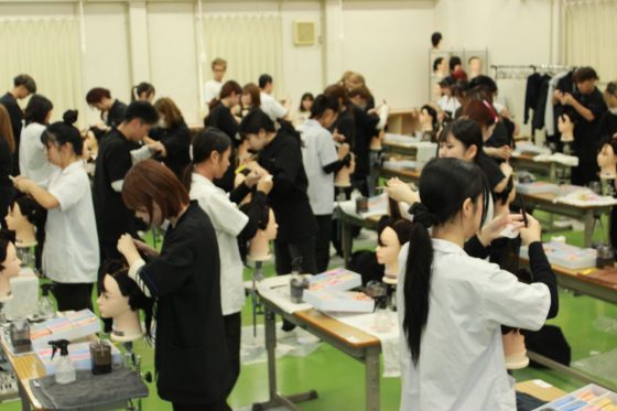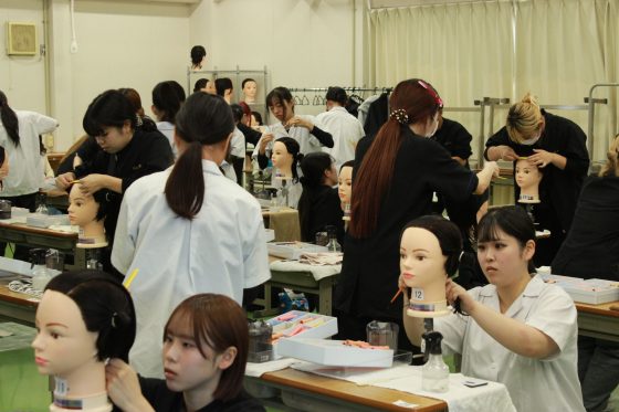 10月24日(金)小土井学園ワインディングコンテストを開催しました。 倉敷ビューティーカレッジ2年生・方谷學舎高等学校3年生の部、競技時間20分 倉敷ビューティーカレッジ1年生・方谷學舎高等学校2年生の部、競技時間30分